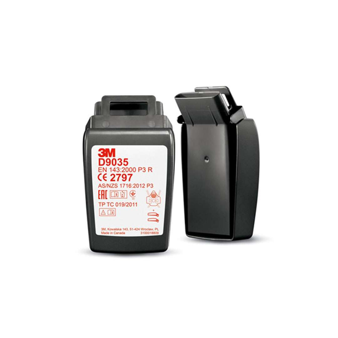Фільтр 3M™ 9035 P3R забезпечує максимальний рівень захисту від шкідливих твердих і рідких аерозолів, включаючи дрібнодисперсний пил, токсичні частинки, дим, бактерії та віруси. Розроблений для використання з напівмасками Secure Click™ 3M, він гарантує герметичну фіксацію завдяки інноваційному чотирьохточковому байонетному з'єднанню, що значно полегшує процес встановлення.